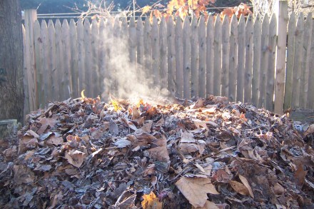 Having given my pile a top-level turn when I stuffed it full of fresh compostibles a week ago, I have no big plans to take a deep dive today. But I can’t resist prodding my pile with the manure pitchfork. I plunge the bended tines through the crusty outer layer of leaves, teasing the mix up and out of its repose. This fluffing up will allow my pile to take shallow gulps of air, at least, and to be able to soak up more rain, which is on the way. A few thrusts of the rebar rod also help to infuse the inner reaches of my pile with deeper drafts of air.