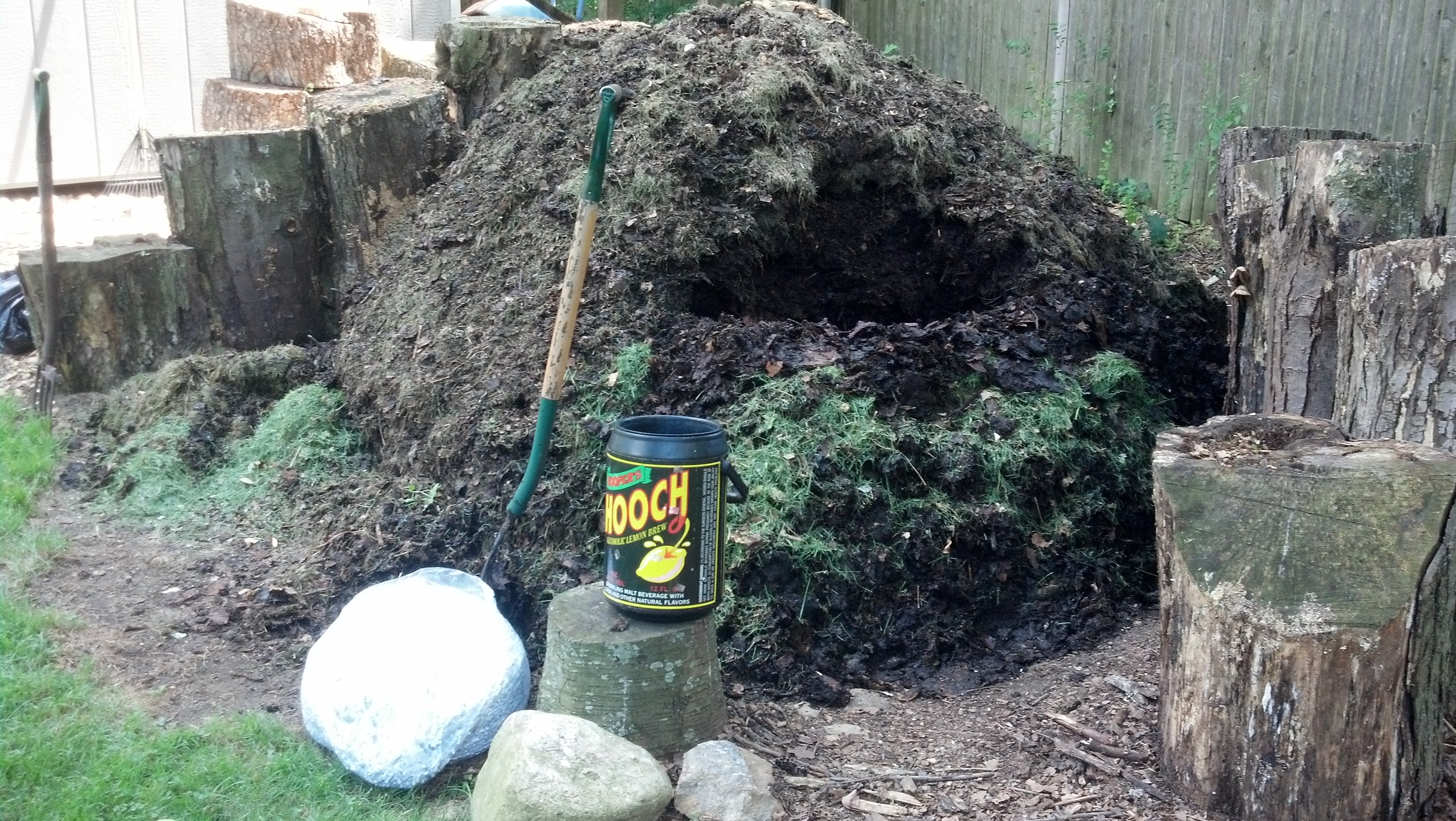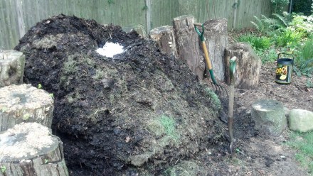 As I burrow my way back and down and up and in to this corner of my pile it collapses onto itself. It knows when it’s goose is cooked, and I fold another layer of grass clippings across the top, finishing the near-done humus with a basting of fresh, wet grass trimmings.