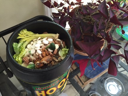 Still, I gather two hopper fulls of fresh-cut grass clippings, which I heap along the front of my pile. I have a stuffed container of kitchen scraps to dispense with, as well as my neighbor’s ash can. They left town for their annual summer trip to the mother’s home country of Hungary early in the week, and I find the heavy can half full of food scraps, rotting in a pool of rank liquid. It’s been that hot of late, and the food waste has simmered into a ratatouille of rot — compost tea, some call it.